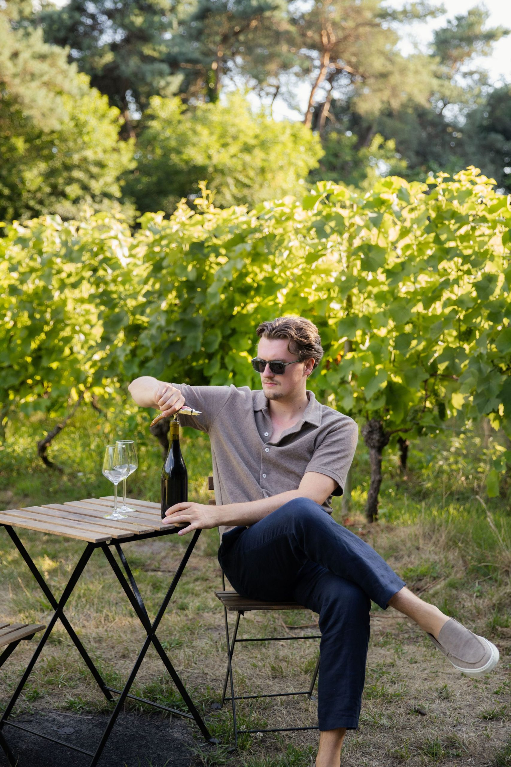 “Ik ben nog volop aan het ontwikkelen, maar ik wil vooral lichte, frisse en biologische wijnen maken. Geen zware flessen, wel wijn die je opent bij een borrel, een feestje of gewoon in de zon. Speels, een beetje rebels, altijd met respect voor de natuur.”