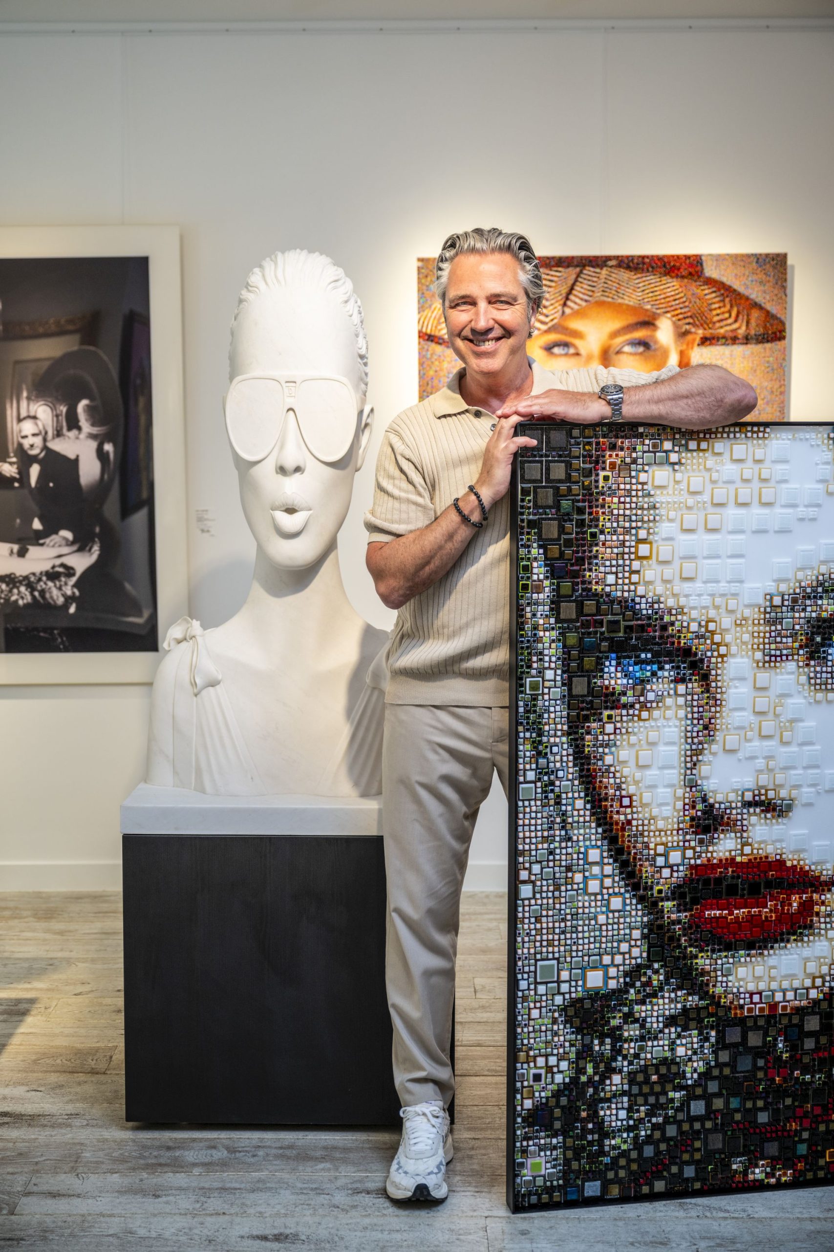 Denk nu niet dat Arian alleen maar in zijn galerie vertoeft. Hij bezoekt ook beurzen, zoals Art Miami. “Dat is dé beurs. Daar komt ik kunstenaars tegen, waarvan ik óók werken heb hangen of staan.” Hij onderstreept dat die werken niet per definitie snel verkocht hoeven te worden. “Welnee, ik heb geen haast. Ik ben verslaafd aan kunst”, bekent hij. Toch is er aan hem zelf geen kunstenaar verloren gegaan: “Ik kan het niet, al ben ik wel behoorlijk creatief en heb ik een brede smaak.” Die smaakt komt met name tot uiting in écht moderne kunst. Daarmee is Très Art een begrip geworden, in de regio en daarbuiten. “Er wordt in Breda en omgeving veel kunst gekocht. Dat is hot en hip.”