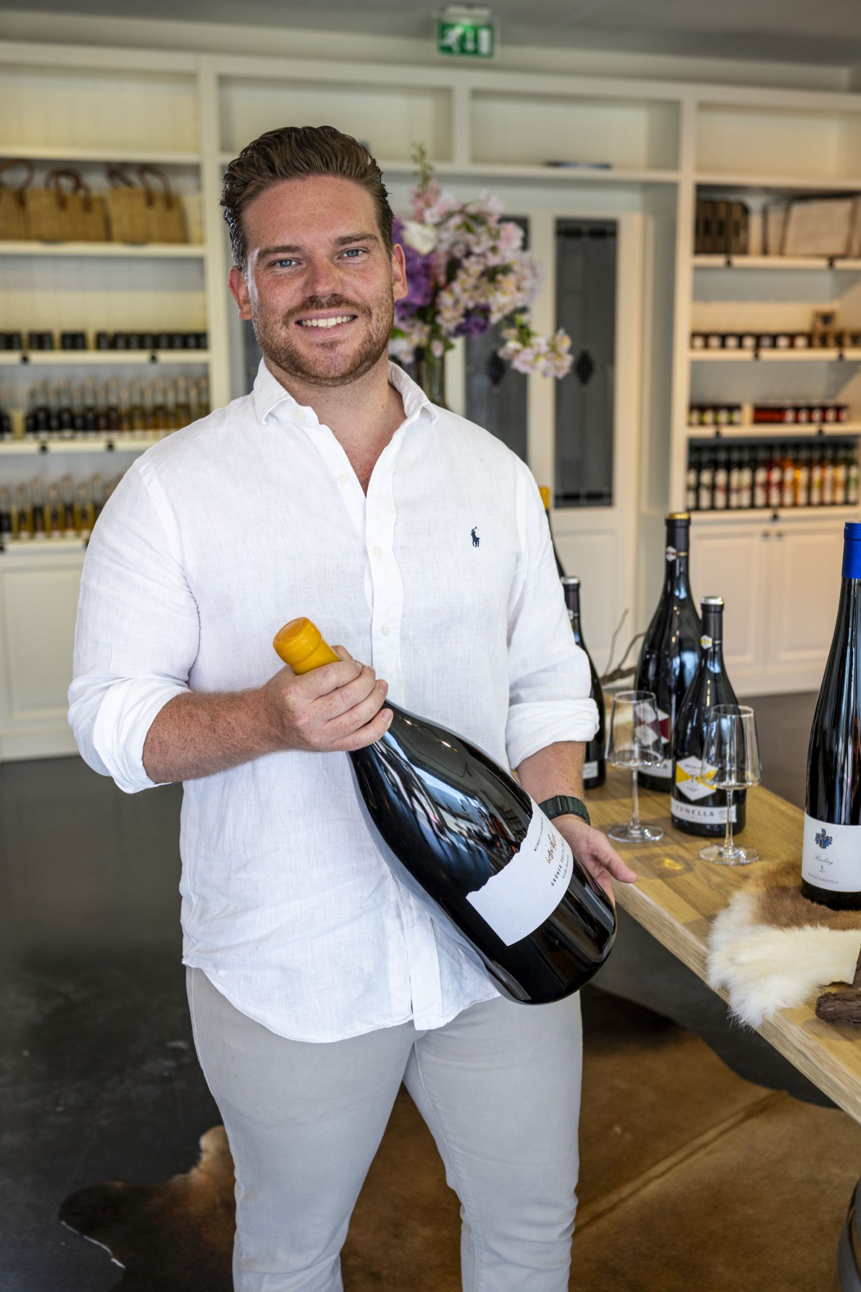 Richio omschrijft Alpen Alm als een ‘uit de hand gelopen hobby’. Hij woonde een deel van zijn jeugd in Oostenrijk, waar hij op redelijk hoog niveau de skisport beoefende. De liefde voor het land én de producten die daar vandaan komen bleef eigenlijk altijd. “Dat begon met de wijnen”, klinkt het. “Wijnen uit Oostenrijk zijn heel erg zuiver. Een aanbod zoals wij nu in de zaak hebben, vind je hier nergens.” Doordat hij de taal goed spreekt, weet Richio zijn weg in Oostenrijk gemakkelijk te vinden. Hij komt bij de wijnmakers thuis. “We importeren alles zélf.” Hij werkt vooral gedreven door passie. “Al heb ik wél een wijnopleiding gehad”, voegt hij daar aan toe,